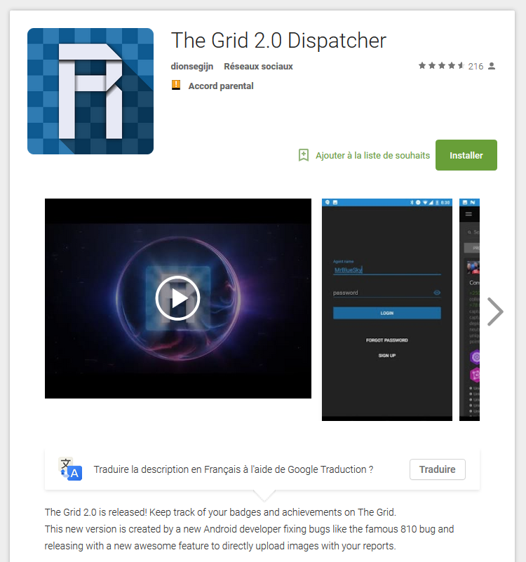 L'appli TheGrid Dispatcher 2.0 peut être téléchargée depuis le magasin GooglePlay.